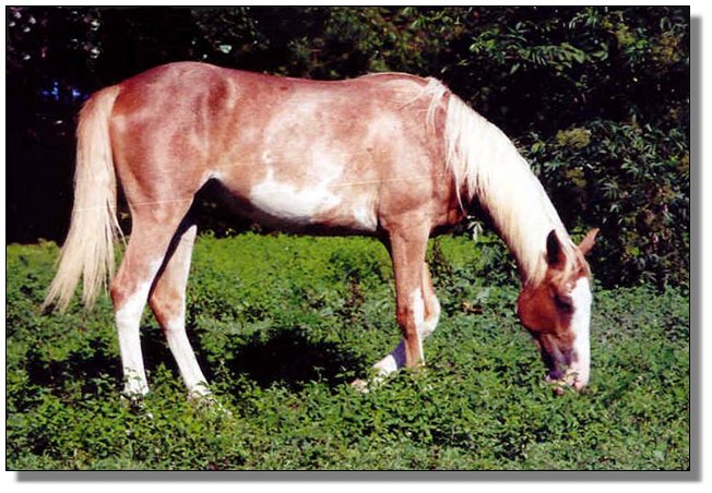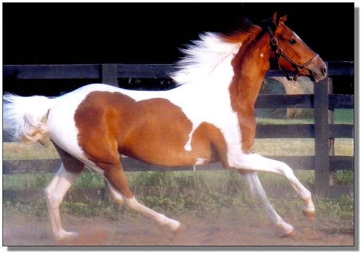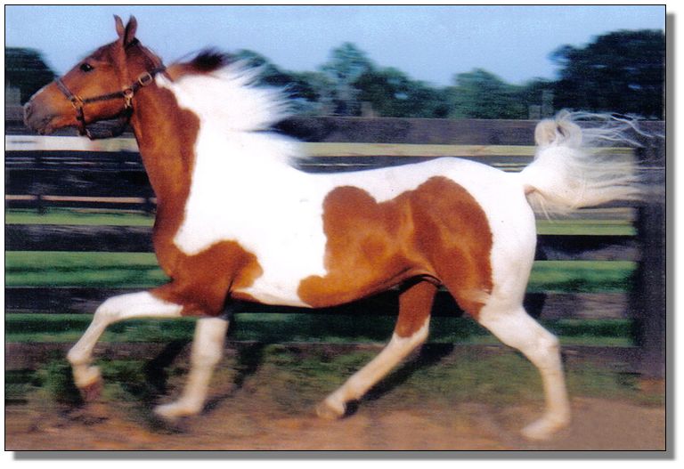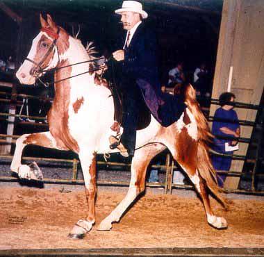 | Pinto Registered Spotted American Saddlebred Gelding White with Chestnut (Sorrel) spots |